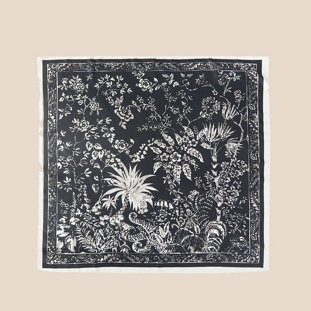 Black Botanical Print Square Bandana