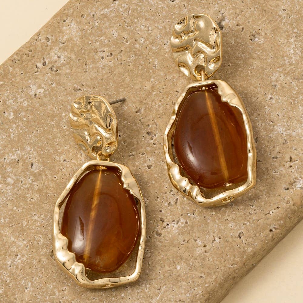 Guaranteed to add instant glamour, our Brown Marble Resin Oval Dangle Earrings are the perfect statement accessory for any occasion. Featuring a stunning marble-inspired resin oval set in warm brown tones, this pair blends modern sophistication with soft, resort-ready elegance.