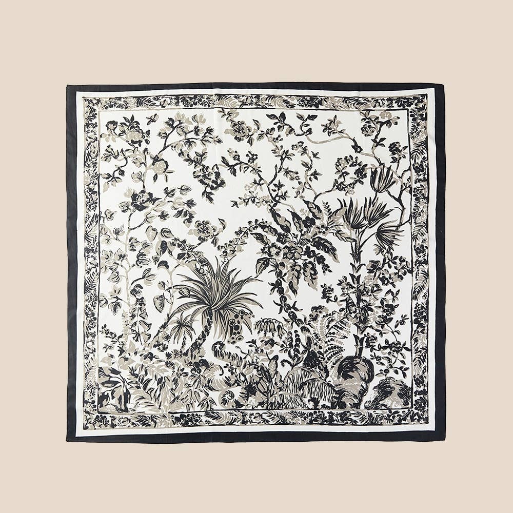 Refined, timeless, and effortlessly chic — our White Botanical Print Square Scarf adds an air of understated luxury to any outfit. Featuring a delicate botanical motif across a crisp white base, this piece complements both casual and dressy looks with ease. Style it as a headscarf, necktie, or handbag accent for a touch of resort-ready sophistication.